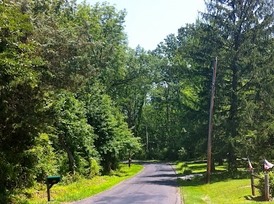 I was staying with friends in rural Hunterdon County in the Delaware Valley and it was most definitely Summertime as in the song – I really did see fish jumping and the cotton could have been, if there was any, growing high. July can be pretty humid here in New Jersey but after that thunderstorm when I was walking round nearby Lambertville (yesterday’s blog), the air cleared, the skies were blue and the temperature though high was just pleasantly very hot.