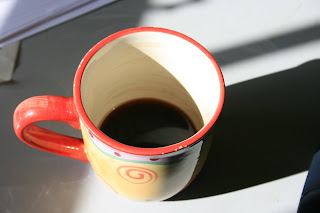 Every morning I drink one mug full of well ground, strong black coffee and, if I am feeling down, bad tempered or morose, after drinking it I am as happy as Larry: satisfied, fulfilled and not needing any more until tomorrow.