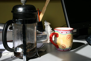 Here, in the photos, is my coffee pot, well it is a cafetiere, and with it, my coffee mug.