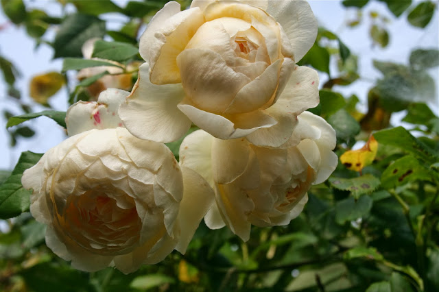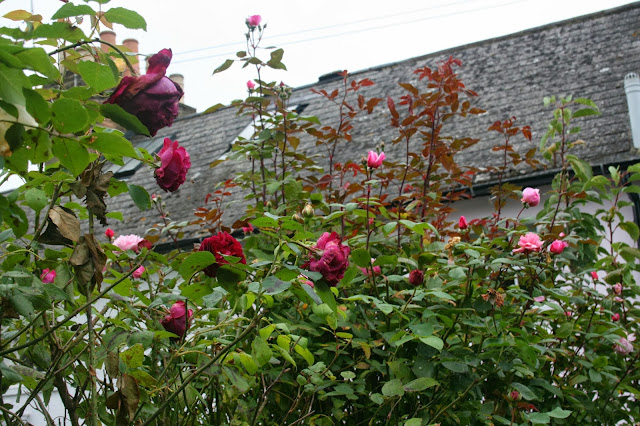Like the roses and all the other plants in this garden, the pyracantha only arrived here four years ago as a tiny plant to take its place when I started the whole garden from scratch. The roses were magnificent first time round this summer and now they’re coming back for a second flush.
