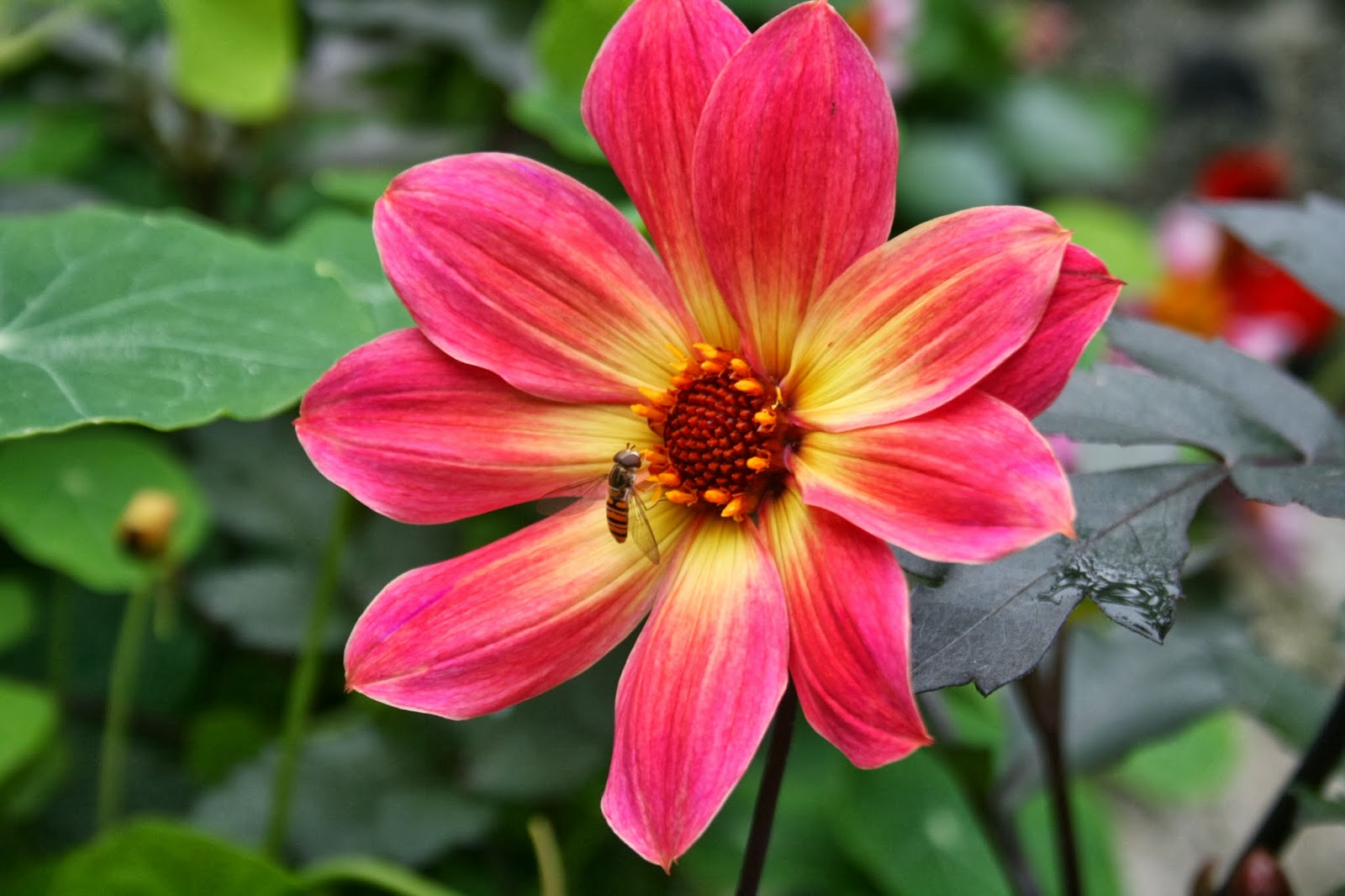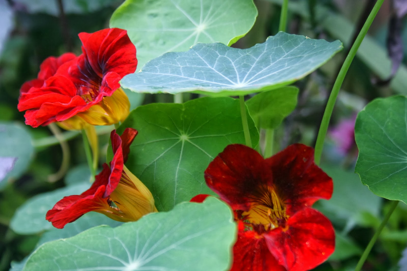 They red nasturtiums are a bold contrast but one that works for me.