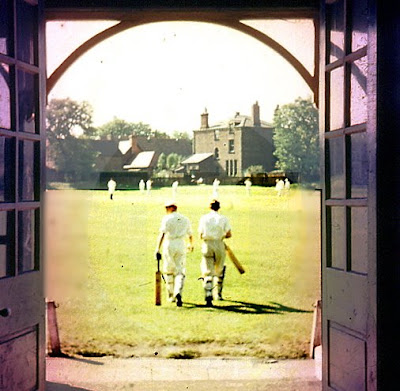 Summers are still illustrated for me by men in white on luscious green grass pitches- matches where external time stands still and the protracted world of cricket time with its drama and strategy takes us out of the business-like seasons of Spring, Autumn and Winter.