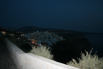 After dinner I walked up the steps to the highest point in Fira not really realising that what I had considered to be high up was only really the beginning of a climb that seemed to take me up above the clouds, if there had been any, just as darkness fell.