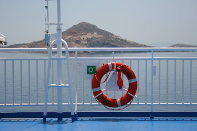 On board, I found a seat with a view and watched as we sailed away from Paros keeping our distance from the infamous Portes Islets where the ferry Express Samina sunk ten years ago with the loss of 82 lives. The captain is still in prison charged with manslaughter and negligence after the ship crashed into these distinctive rocks just outside Pirakia harbour whilst the crew were watching a football match on television.