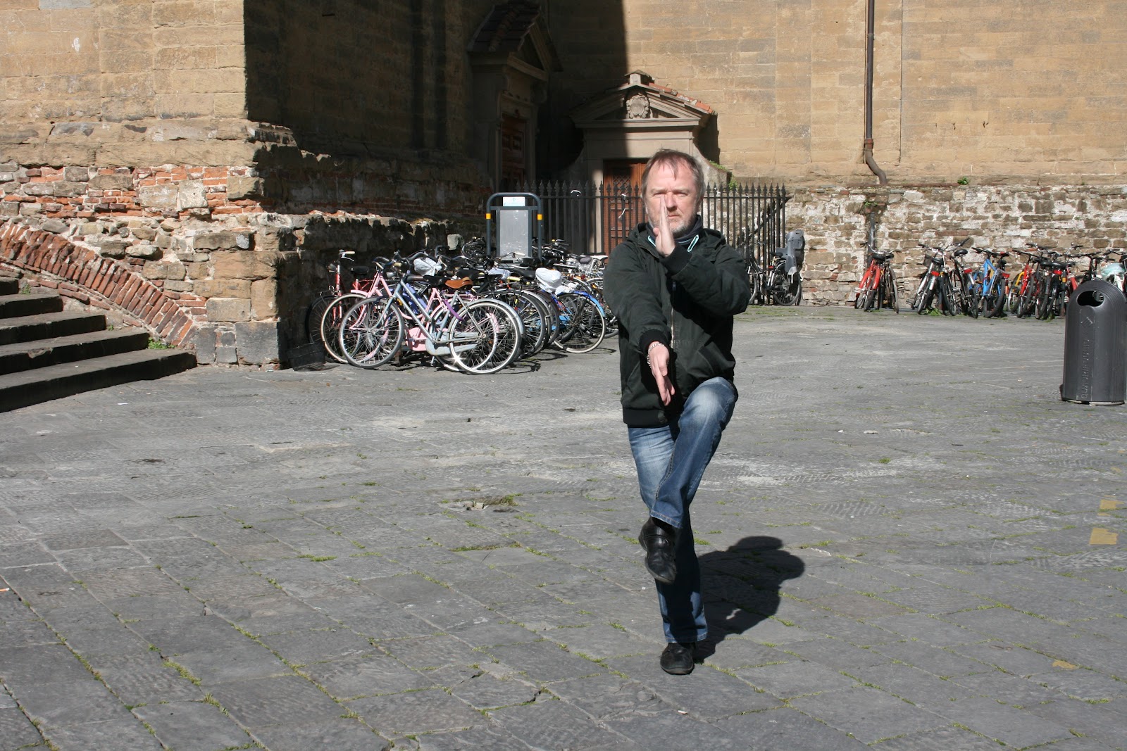 Luckily for me, the morning commuters and market stall holders are tolerant if sometimes amused and intrigued by my kungfu patterns every morning. One of the young Italian handbag sellers has christened me Signor Karatti and, this year, he welcomed me back like an old friend. I was proud too to receive an encouraging thumbs up from a passing Chinaman. I no longer feel that there’s anything odd about the mix of Chinese martial arts with the fine art of the Italian Renaissance.