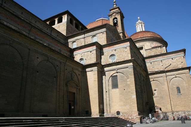 Brunelleschi was also one of the main architects of another impressive Florentine Church, San Lorenzo the church and burial site of the all-powerful Medici family but Brunelleschi died before he had finished work on it and the build continued to the design of Michelangelo (1475-1564) no less. Michelangelo too, as was often the case, failed to finish his work here and the frontage of the church, even though, he did the design drawings, was never built – leaving modern Florence with the dilemma of whether to complete it now nearly 500 years later. San Lorenzo may be famous for Michelangelo and those Medicis but, for me, it is the place where I do my kungfu practice every morning when I’m in town – often to the thrilling sound of those stirring San Lorenzo bells.