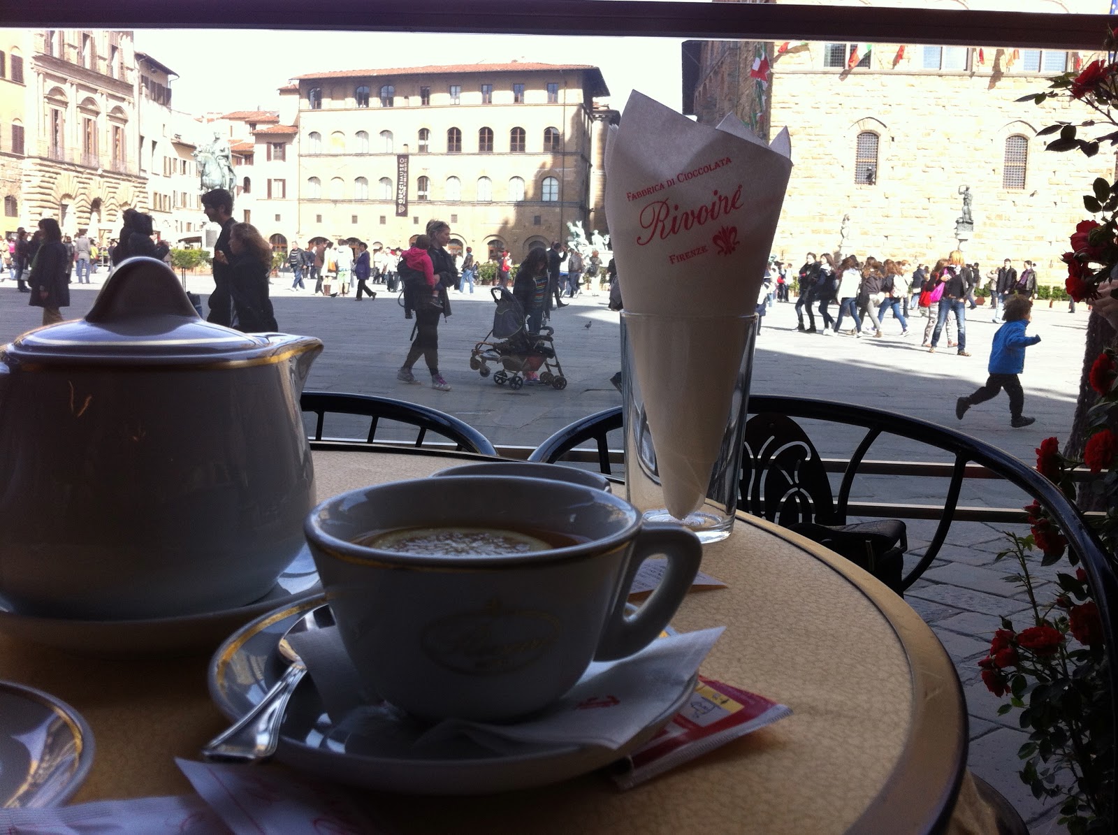 Espresso coffee still delights me in Italy but there were also moments after a lot of street wandering when there was nothing quite like that cup of lemon tea in Florence’s busiest square, the Piazza della Signoria, home to the Medici palace, the Palazzo Vecchio, just round the corner from the Uffizi gallery, one of the artistic wonders of the World. It is worth the cover price to sit quietly gazing at this wonderful view.