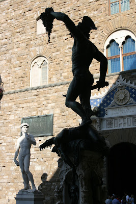 Just a few feet away, Perseus by Benvenuto Cellini (1500 – 1571) waves the slaughtered Medusa’s head at the copy of Michelangelo’s David that stands at the entrance of the Fourteenth Century home of the Medici family, the Palazzo Vecchio. The original statue of David is now stored away at a special gallery which is maybe the city’s greatest treasure of all.