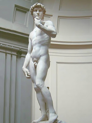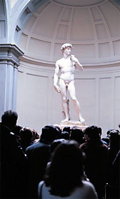 No reproduction captures the full beauty of the marble or the impact that this figure has on its audience. David is a complex of ambiguities and pure perfection at the same time. Michelangelo’s statue shows his innocence but also his experience, he is the boy giant-slayer but also the giant, he has spent his force and yet is still in a state of vulnerable expectation. We already see the loss of innocence that this innocent will find with his victory and we are witnesses to his dawning realization. For all of that and more, we can also just simply marvel at this most beautiful and highly crafted masterpiece.