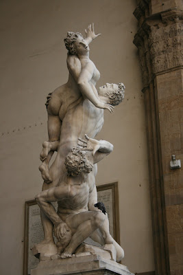 Giambologna intended it to be a composition of three figures but no one told the pigeon who sits comfortably preening itself unaware that it is perched on a Sixteenth Century kneecap.