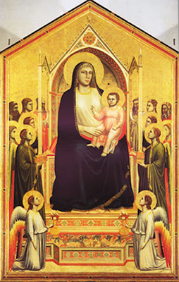 and there’s Giotto’s radically realistic, for its time, Madonna and Child where the angels have to jostle for a good look in a space defined by light. As you walk through the early Renaissance rooms at the Uffizi you can see the gradual secularisation of the Holy Family take place in front of you.