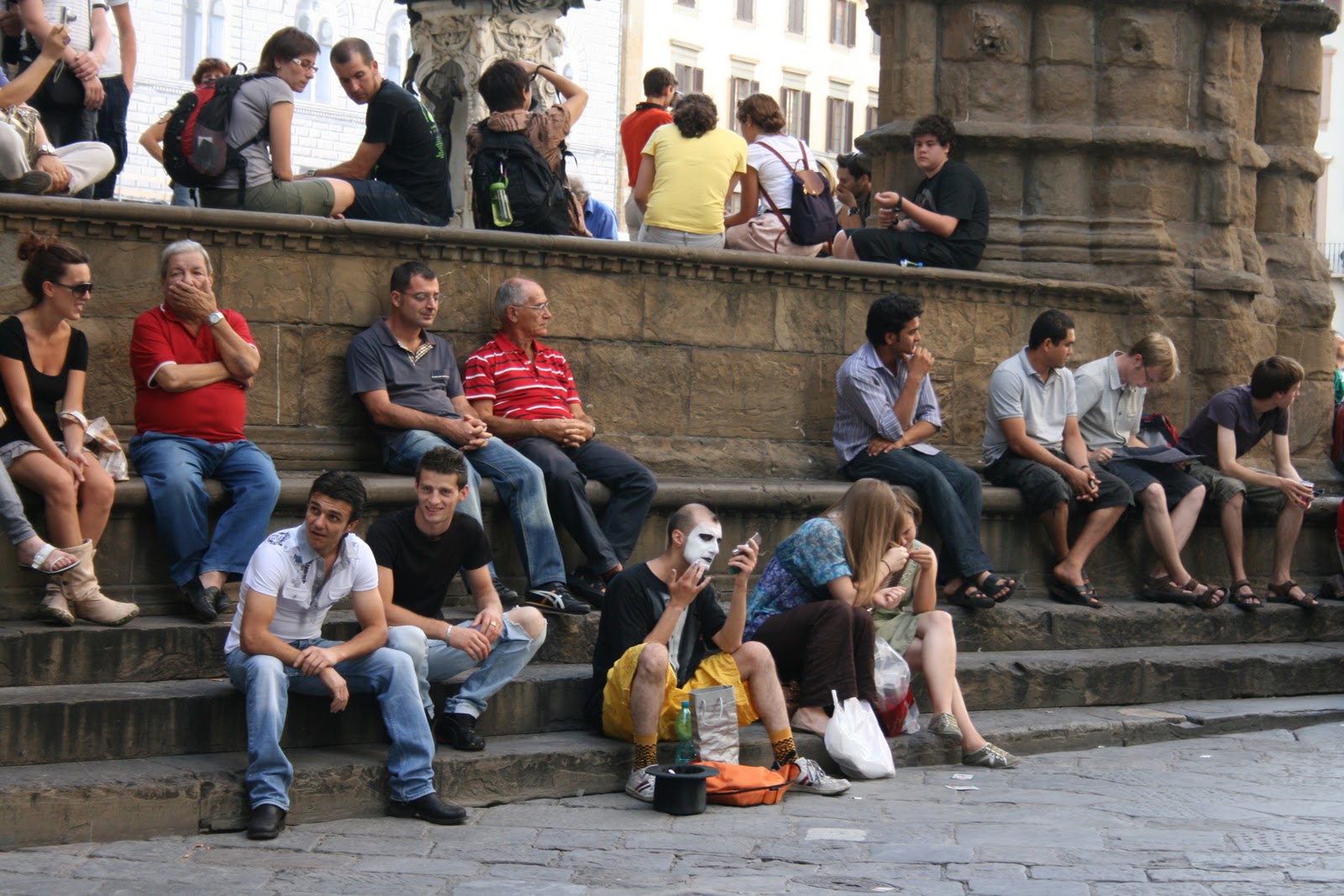 Here, on the steps of the Uffizi art gallery, the odd angel going home with his suitcase doesn’t even warrant a look…