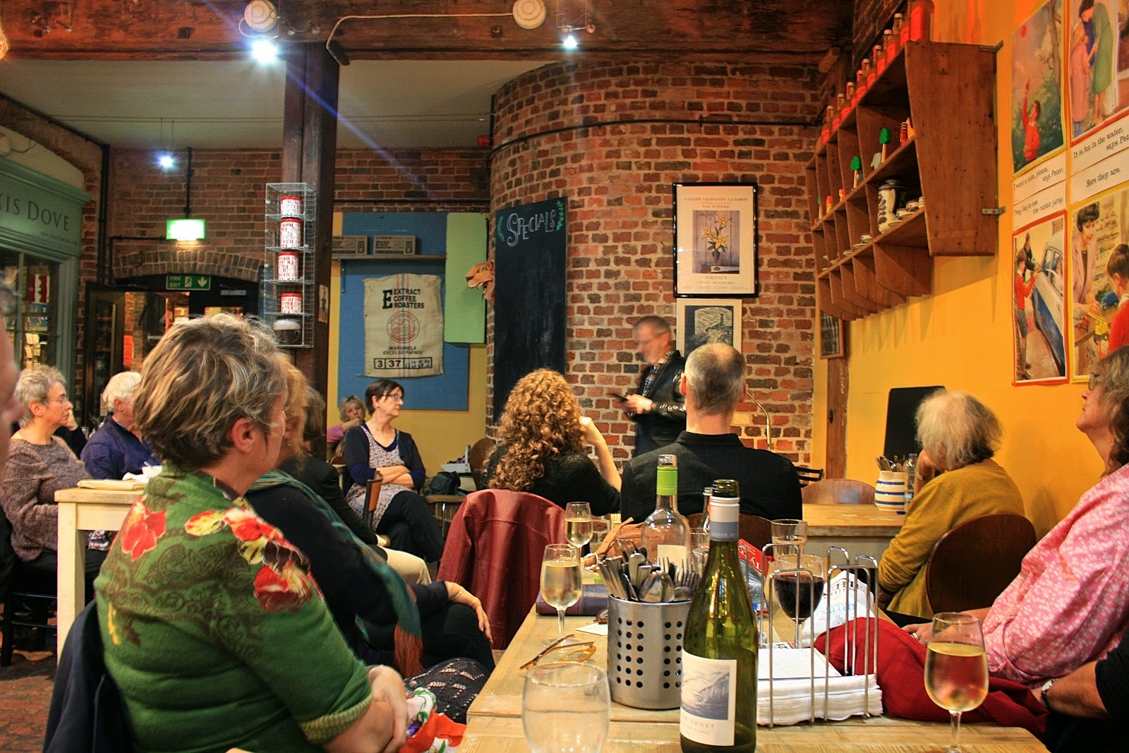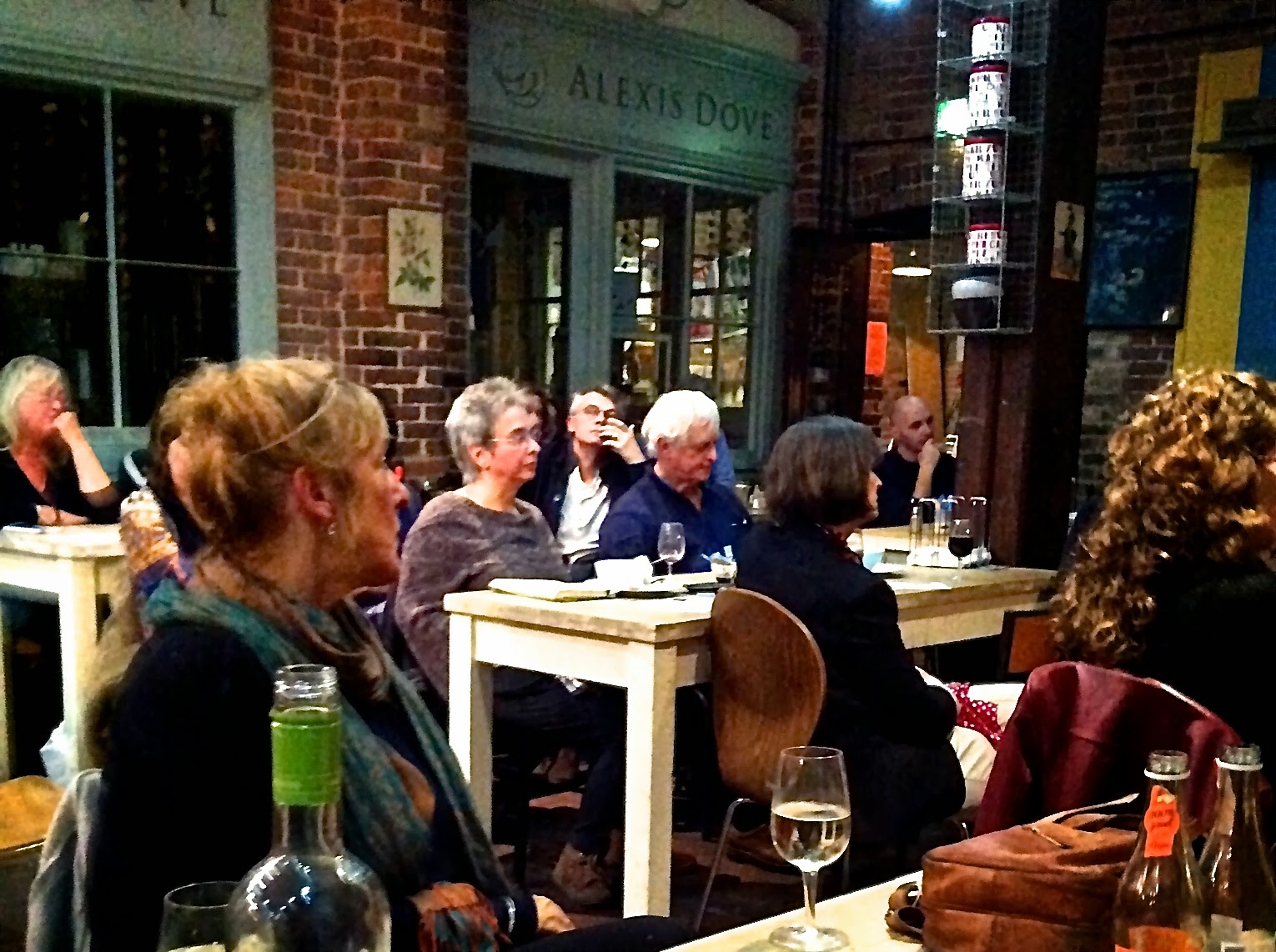 The Needlemakers centre, once a candle factory then a surgical needle factory, is now a cosy conglomeration of craft shops, an excellent bookshop, Skylark, and a restaurant where the readings take place four times a year. I was booked a year ago but I was still trying to decide what to read on the day. I was sharing the evening with the poet, an American but now Lewes resident, Liz Bahs, who writes absorbing poetry sequences where the subject is approached from a variety of different angles. She was in great, exuberant form on the night. The other reader, also a fine poet, was Sian Thomas, a friend from the days when I used to run a Lewes poetry event called First Wednesday Writers. She read from her wonderfully sardonic but powerful pamphlet, Ovid’s Echo (published by Paekakariki Press) where she takes classical themes and gives them more than just one twist. She, like Liz, also read some new poems – her’s, written as part of her project as Poet in Residence for Ashdown Forest, were richly evocative. I don’t think she actually has to live in the forest but she’s certainly spending a lot of time there.