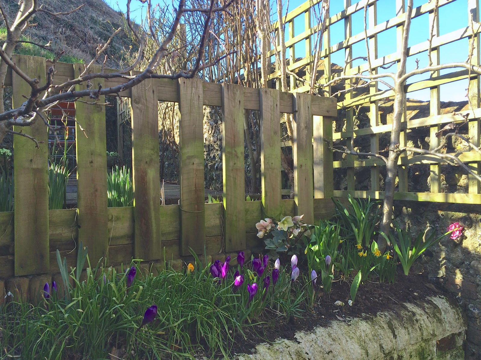 After a sunny and relatively mild weekend here in South East England, I can look out at my small Lewes garden and enjoy the results of some intense gardening – doing the work I should’ve done in February but completed, I think, in the nick of time if I’m to get another dramatic display of roses in the summer.