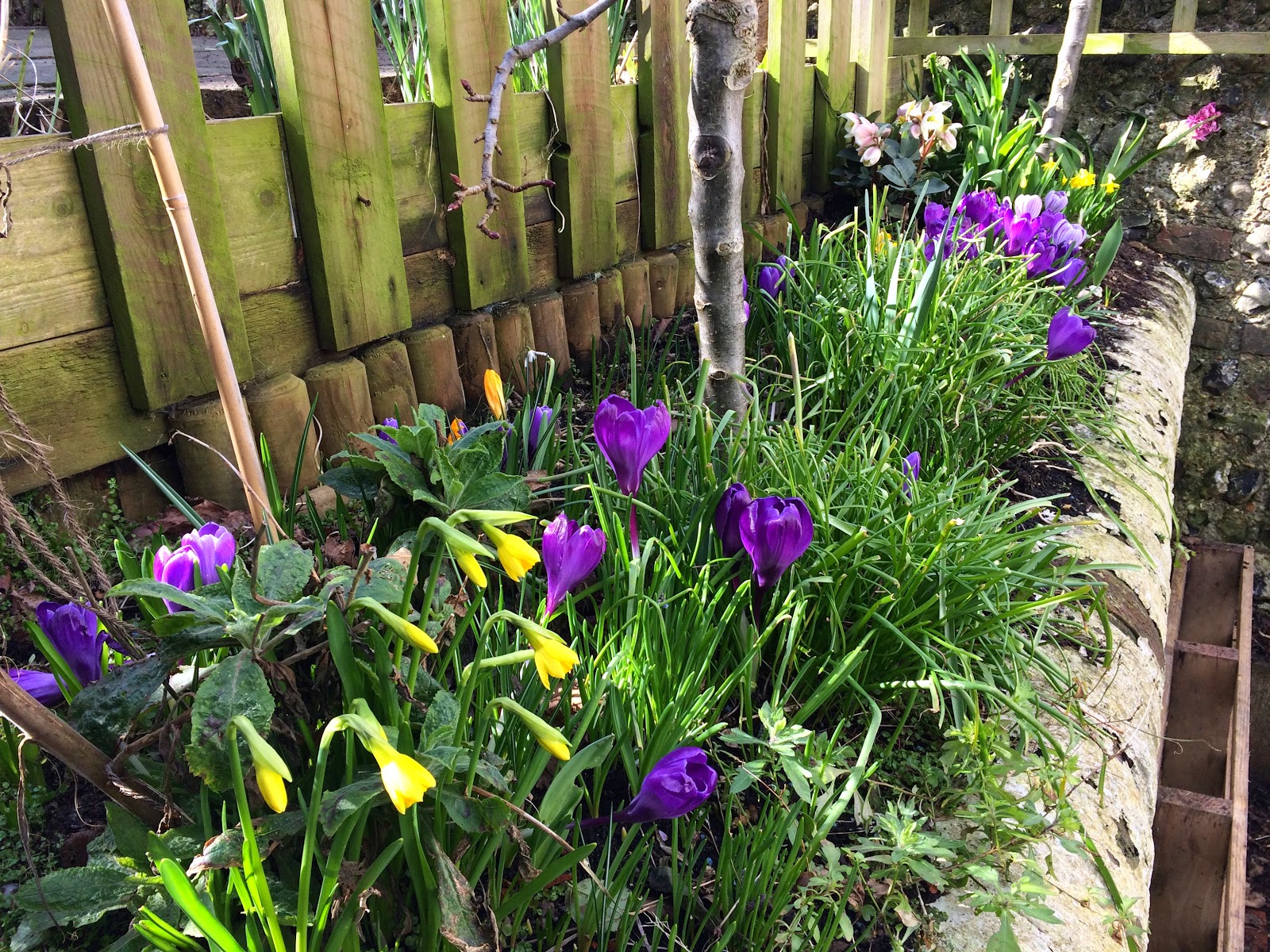So with lacerated hands from all that rose pruning and the few aches and pains that usually accompany that first major gardening day of the year, I can now enjoy the rather late display of crocuses without any sense of guilt at jobs not done.