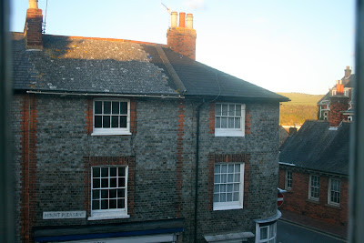 Lewes is looking calm and elegant in the morning light where the Georgian houses meet the Victorian police station building and the rows of other 19th. century terraces beyond.