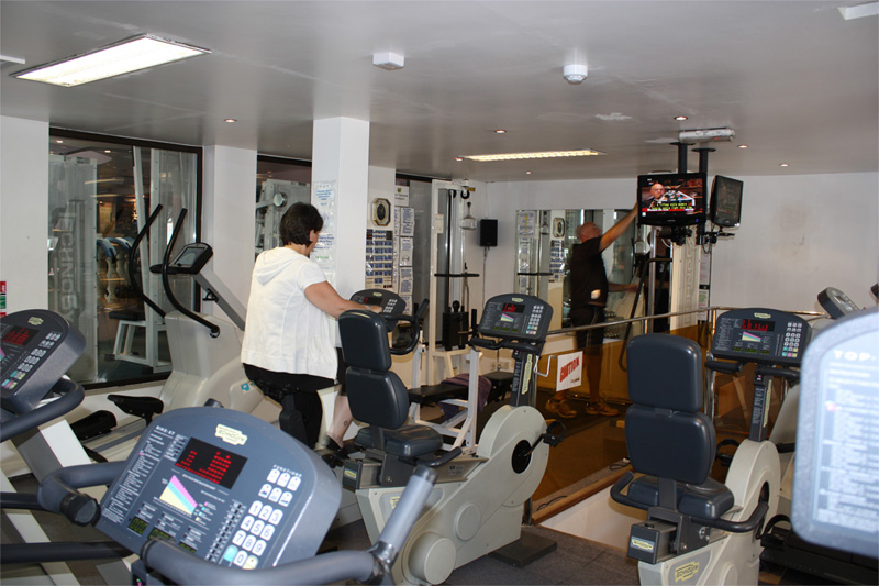 The gym, much too conveniently placed by the bar, has weights and training machines which I use under Ricardo’s strict instructions wearing my heart rate monitor and watching that I never go above or below a planned rate. The devise is strapped to my chest and transmits its readings to a watch on my wrist. For a mildly obsessive nerd, the technology and the measurements are added joy.
