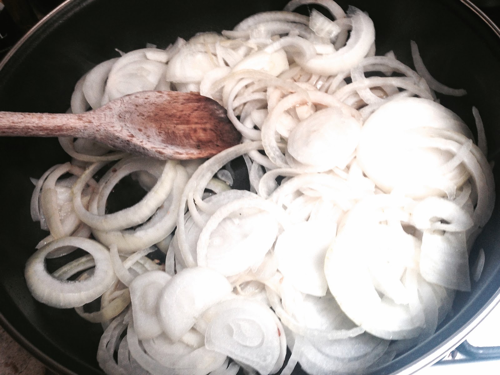 It already looked delicious but I carried on pushing the onions around until the looked ready for the next ingredients. Then I lowered the flame.
