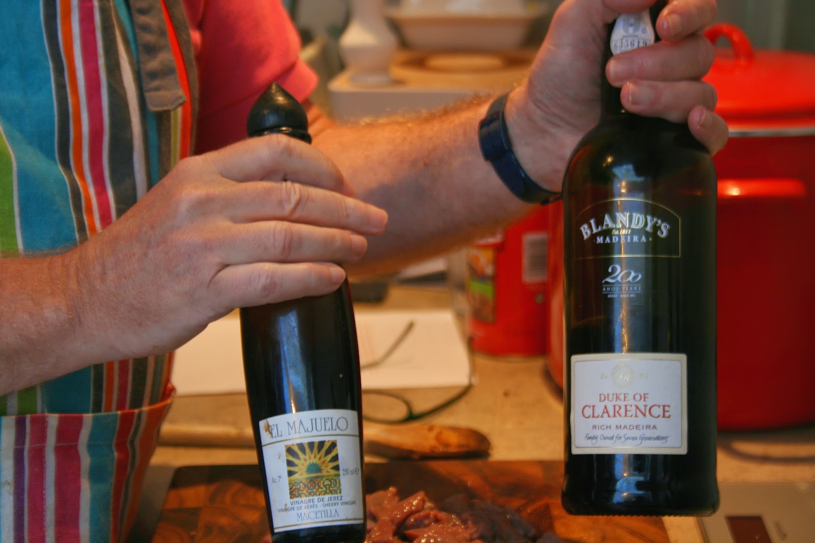 It was time to add 10 fl oz. of the key ingredients – dessert wine (here some Madeira found at the back of a cupboard) and 10 fl oz. of balsamic vinegar.