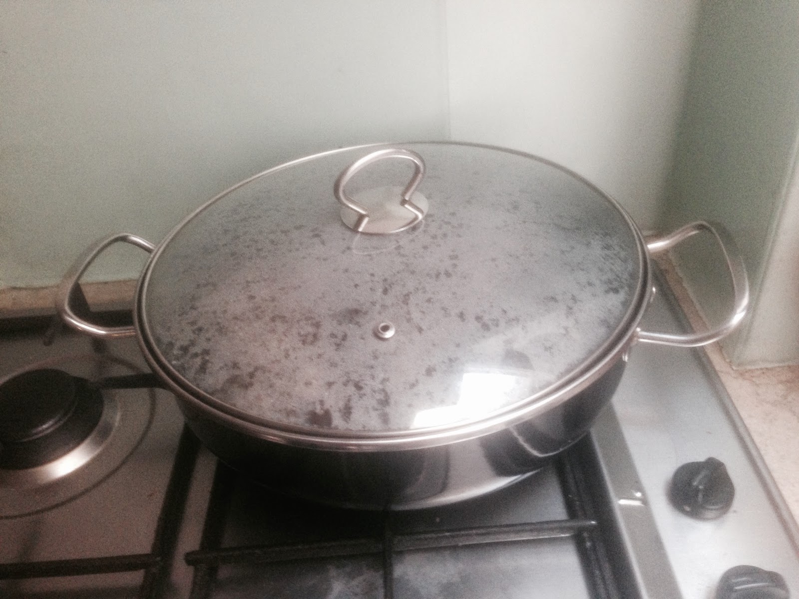I kept stirring it all up into a delcious looking mush and then I covered it with a lid and put it on the lowest possible flame on a back burner for 45 minutes.