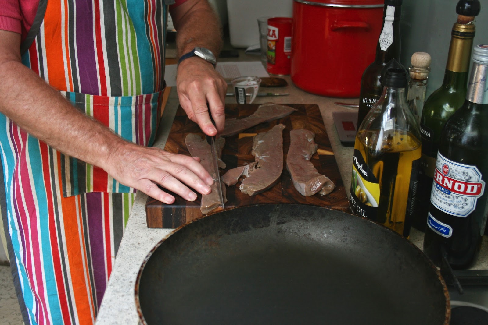 While that was simmering away, I got out the calves livers – don’t look if you’re squeamish.