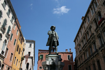 This is the city of the great Italian playwright Carlo Goldoni (1707 – 1793) whose comedies, especially The Servant of Two Masters (Il servitore di due padroni), written in 1745, can still make us laugh in the modern theatre – well when I saw it, I loved it and laughed a lot. Goldoni’s comedies are full of intrigues, confused identity, stolen back street conversations and all the things that we can still imagine in this labyrinthine place.It is quite right that Goldoni has a very jolly statue right at the heart of the town.