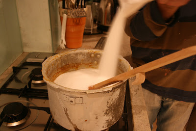 …I then tried to get rid of any scum floating on the surface by adding a half teaspoon of butter and mixing it in, thanks to Delia’s advice….then I left the mixture to settle for twenty minutes….
