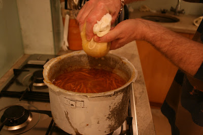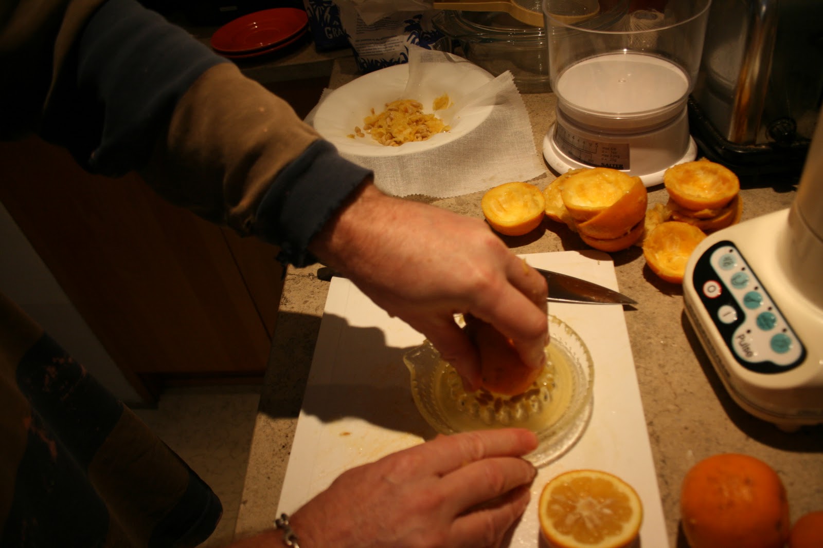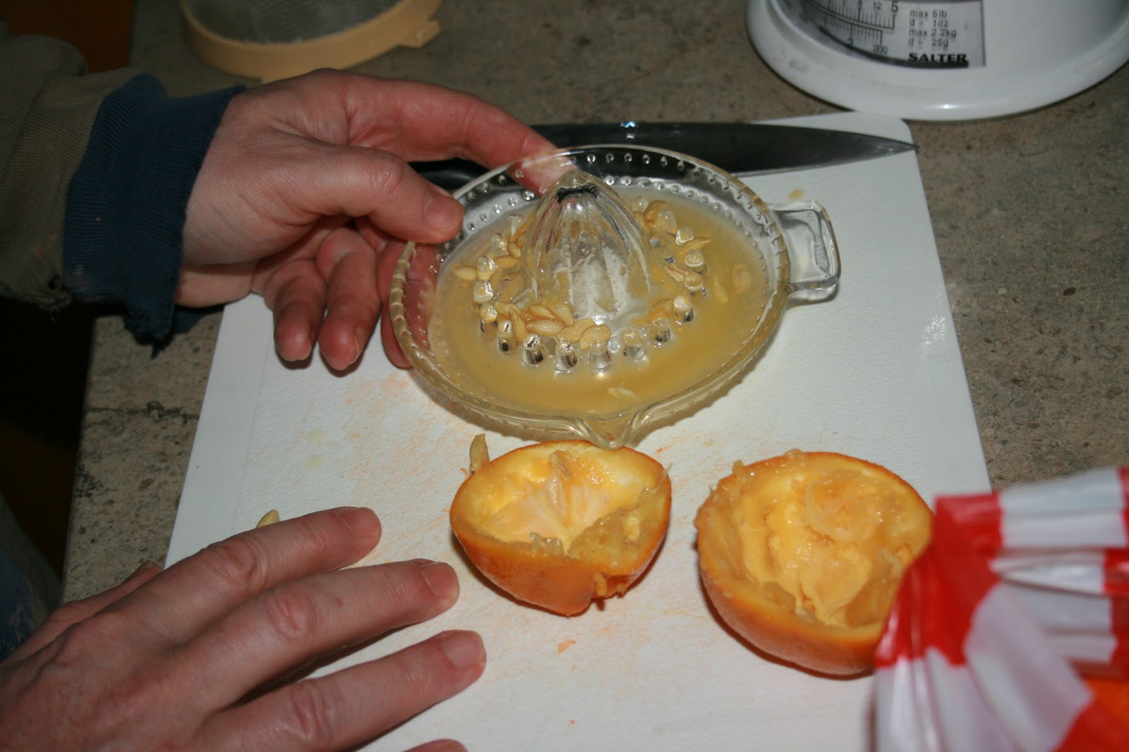 …trying to keep the pips and the pith in the little central bit of your lemon squeezer…..