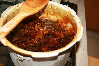 …then bring it to the boil and let it simmer for two hours…….keeping it stirred regularly…..