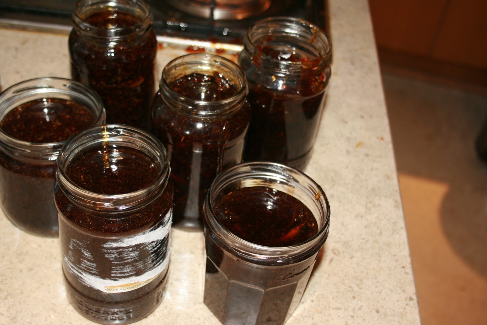 ..had it all been worth it? I wasn’t sure. It looked dramatic enough and tasted nicely bitter without being too much so. It was now time to ladle the marmalade into jars that had been warmed in the oven for ten minutes at a moderate temperature.