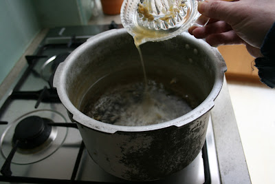 …pour the juice into a stiff bottomed pan with two pints of water….