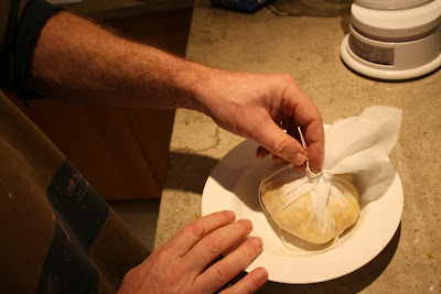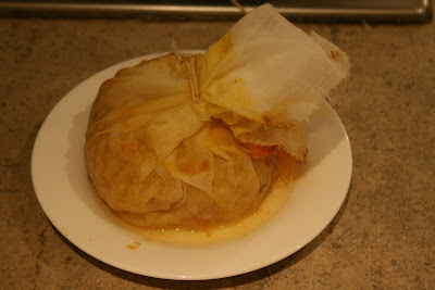 …two hours later, remove the muslin bag and place it on a plate to cool…..