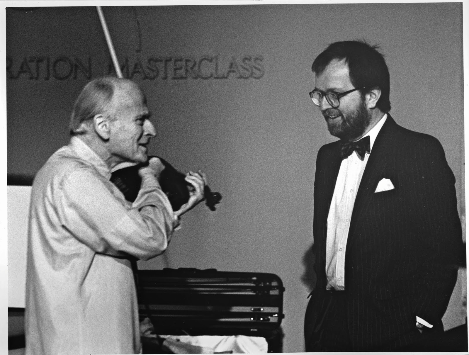 The photograph is framed and hangs on the wall in my study and I enjoy having it there to remind me not just of my affection for Yehudi Menuhin but also as a record of that moment when one of the greatest violinists in the World played his violin just for me. We were talking about what he should play to illustrate a particular point and, with his typical modesty, he asked my opinion as if it could possibly be as valid as his.