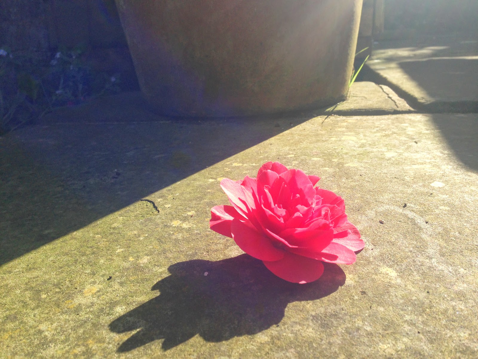 I suppose it’s sad when a camellia bloom falls from the tree but when it lies there like that on a sunny afternoon, I think it has a special beauty. After-all, there are plenty more up there for me not to miss this poor fallen one.