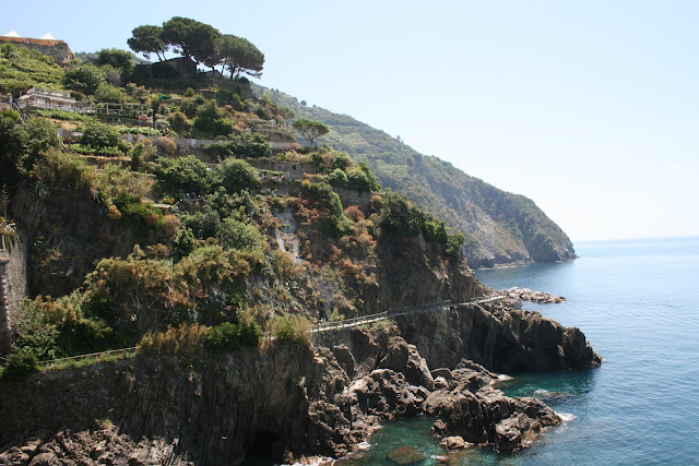 The villagers of Monterosso, Vernazza, Corniglia, Manarola and Riomaggiore created a viable living by terracing the rock for agriculture relying on the cliffs to defend them from the bad guys whilst they cultivated vines, vegetables, olives and lemons.