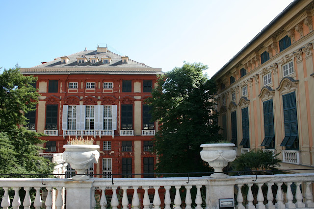 After the Royal Palace, I walked to the pedestrianised Via Garibaldi area where I encountered neither prostitue nor robber. I was looking for a group of palaces that have been turned into a co-joined set of art galleries known collectively as the Musei di Strada Nuova. The photograph below was taken from one of its terraces and you can see the two main buildings, the Palazzo Rosso (the Red Palace) and the Palazzo Bianco (the White Palace) – no prizes for spotting which is which.
