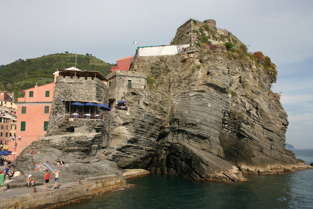 …but I had my eye on that precariously placed restaurant built, incredibly, on the side of the rock. I didn’t stop though because the boat was off again and it was time to go to the last village, Monterosso, the largest of the five where I would disembark to catch my train home.