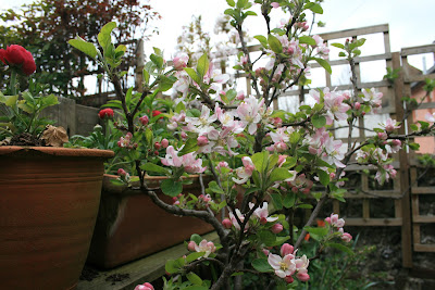 They also blend perfectly with my apple and cherry blossom now in full bloom and a delight not just to me but to a new army of bees. Pink is definitely the new yellow.
