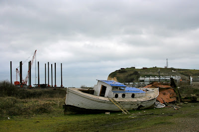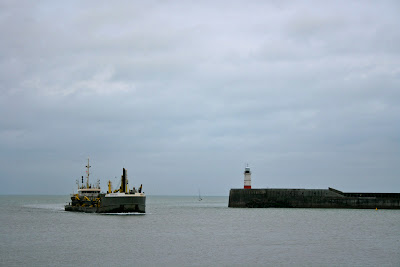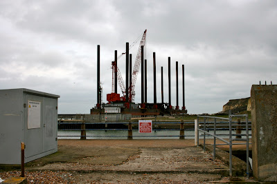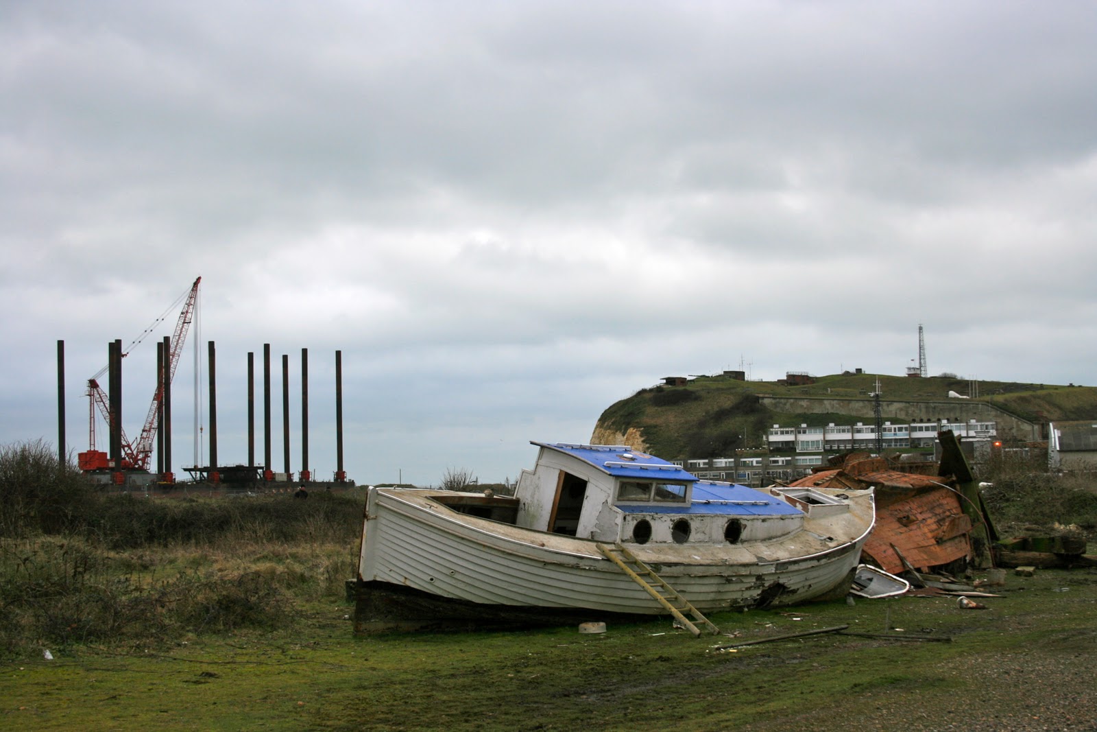 Over the weekend, I spent a moody January afternoon in the little East Sussex harbour of Newhaven which sits only a handful of miles away from my town of Lewes. It is where “our” river, the Ouse, reaches the sea and it is an atmospheric place with a particular scruffy beauty all of its own. This winter it has been dominated by a weird structure that I photographed recently without knowing what it is. I wasn’t worried about that as it was worth looking at just as an abstract construction. If any of you still wonder what it is, I can know let you know that it is a marine salvage platform finding shelter in our harbour over the winter months. Here are some of my photographs from an over-cast but evocative day by the sea.