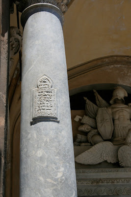 There is though an Arabic elegance to those arches and their pillars and it was no real surprize to find a small inscription from the Karan on one of them. A Muslim visiting card on the main entrance of this grand Catholic building. Good for them!