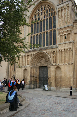 which was full to over-flowing with new graduates and their very proud relations who soon seemed to be perfectly at home under those very fine carved Norman arches.