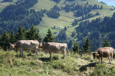 It must have been the thin Alpine air, the sheer exhilaration of being on top of a mountain or maybe the gently evocative peeling of hundred of cowbells in the surrounding valleys but this felt definitely like the real thing so I reverted to type and the cows seemed to appreciate my efforts.