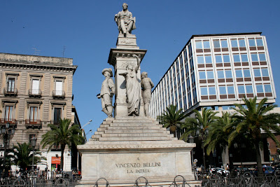 …. but it was great to see this gigantic statue in his honour right in the middle of town. Bellini sits on his pedestal with some of his best known operatic characters at his feet – Arturo from I Puritani is on the left and, in the centre, in a suitably dramatic pose, is his greatest creation, the tragic, love-lorn Druid priestess, Norma presiding over this exciting city.