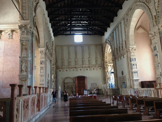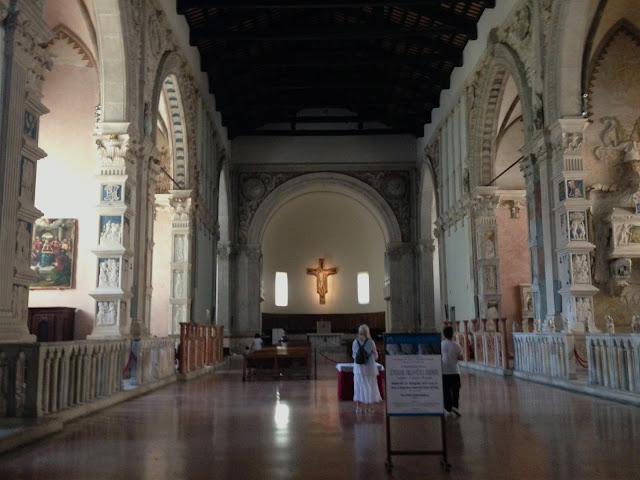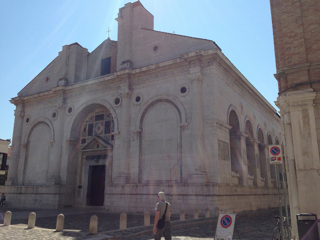 The other famous building in Rimini is the so-called Tempio Malatestiano, the 15th Century church of San Francisco, commissioned as a rebuild of a Franciscan Gothic church by the then ruler of Rimini, Sigismondo Pandolfo Malatesta (1417-1468). The architect was one of the most famous of all Renaissance architects, Leon Battista Alberti (1404-1472). The church is reputed to be the first ever to use a Roman triumphal arch as its inspiration and it must have been the case that Alberti was referencing the Arch of Augustus just round the corner.