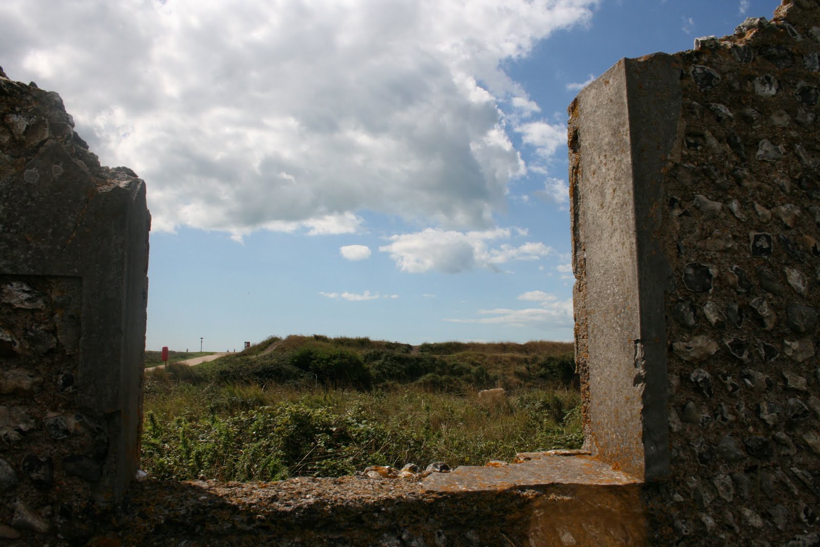 I was heading towards some old ruins that lie just off the seafront where tall grasses and ripening blackberries meet the sea.