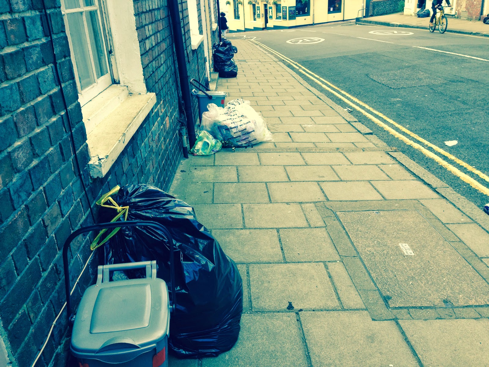Lewes was made slightly less idyllic because Lewes Council didn’t notify the residents of our street that the rubbish was being collected a day earlier last week and consequently the street was lined with bin bags all weekend.