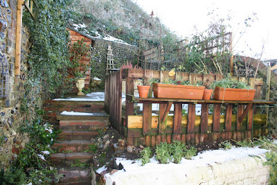 The snow is receding this morning so I went out to see what had happened to the plants in my garden which have been buried since last Thursday when it looked like the picture below.
