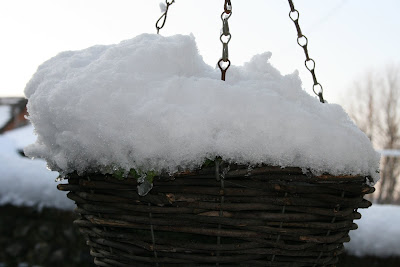 Familiar objects are returning to normal after their snowy wrapping but I resisted drawing a face on the perfectly smooth covering on the garden table. Maybe it is the ideal setting for a Marguerite cocktail party with those glasses snuggled in the snow at a perfect temperature.