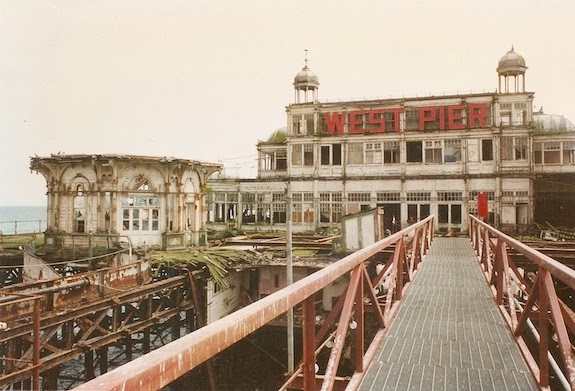 We had some gale force winds in the UK on Wednesday. I lost two tiles from my roof in Lewes, but things were far worse down the road at Brighton’s lovely old West Pier, opened in 1866 and still going strong in my childhood. For years now, it has been in decline ever since it was closed to the public in 1975 and declared “unsafe” by its new developer buyers. It was then left to face its fate as documented in the following photographs. I grew up in Brighton and have written about it in my novel Stephen Dearsley’s Summer Of Love and, again recently, in a newly completed Brighton novel, and I have watched with dismay as the old pier has gradually tumbled into the water. One day, as happens when you live by an unforgiving sea, it will be gone without a trace. I shall miss it and, sorry Brighton and Hove Council, I shall blame you for the decades of neglect.