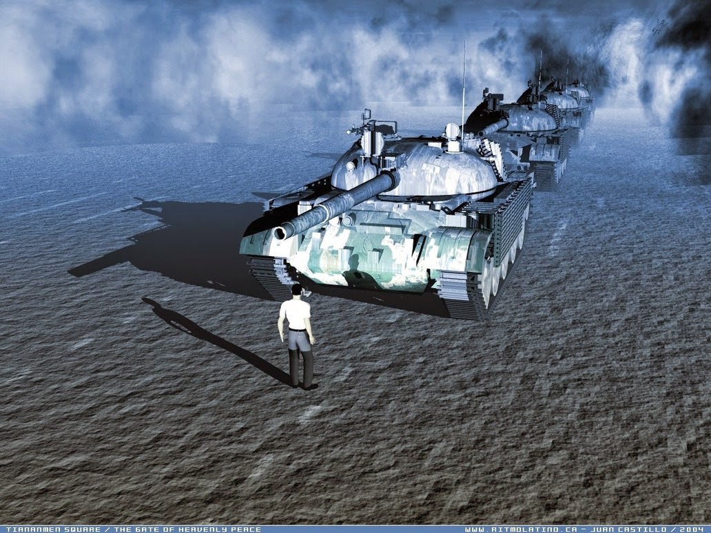 Interesting piece of digital art here on the 25th Anniversary of the Tiananmen Square protests that were put down brutally 25 years ago today. This picture, like it or hate it, won’t be shown in China today – all information about this event have been blocked from all media – where that is possible. It is every bloggers duty to mark the event and to hope that our posts somehow get through China’s censorship firewall.